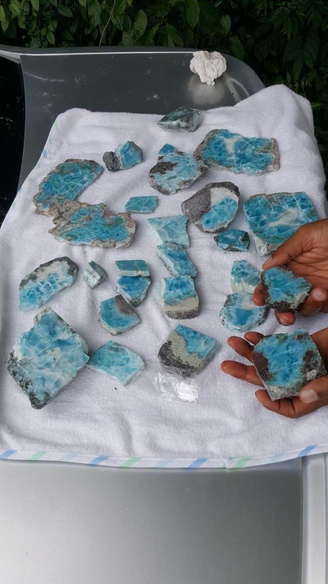 Some of our rough & raw Larimar